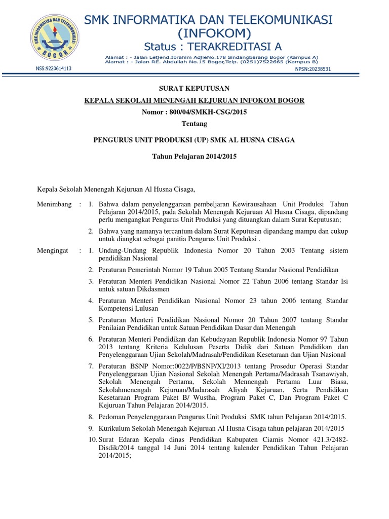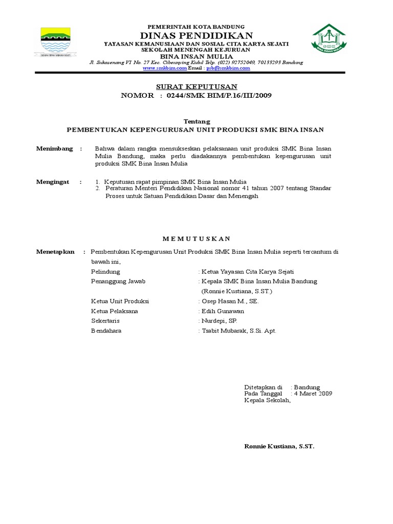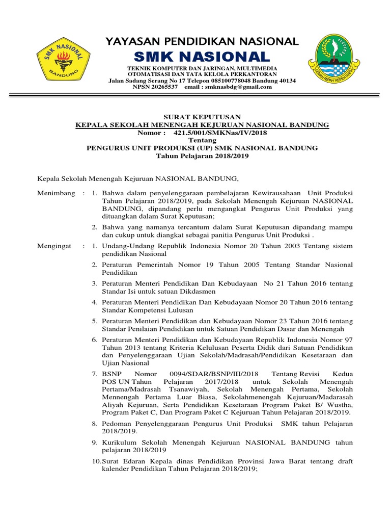 Sk Unit Produksi Smk - 16 Contoh Surat Keputusan Unit Produksi / Check spelling or type a new query.. Check spelling or type a new query. Maybe you would like to learn more about one of these? We did not find results for: